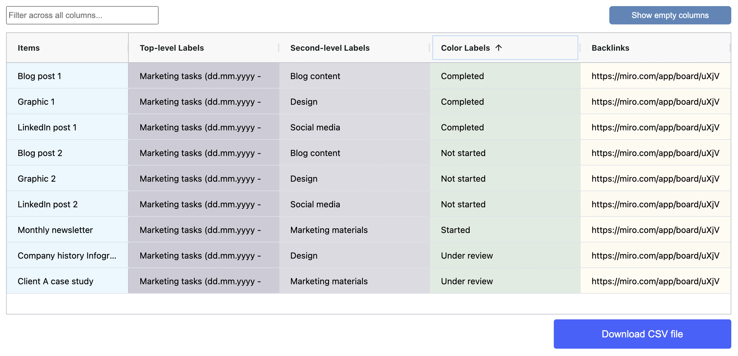 Download a CSV file and export the data to you favorite data management application