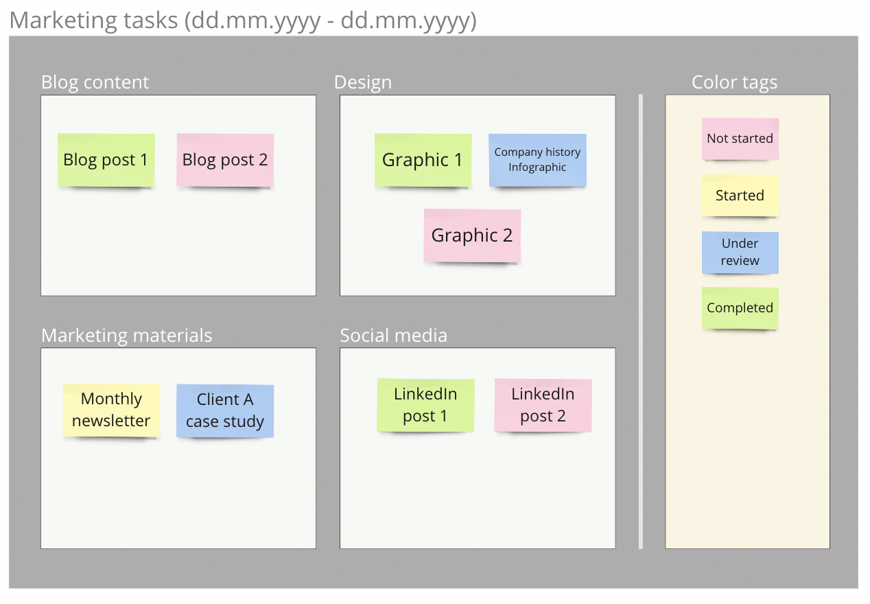 Use sticky notes, shapes and text items to build spatial table representations